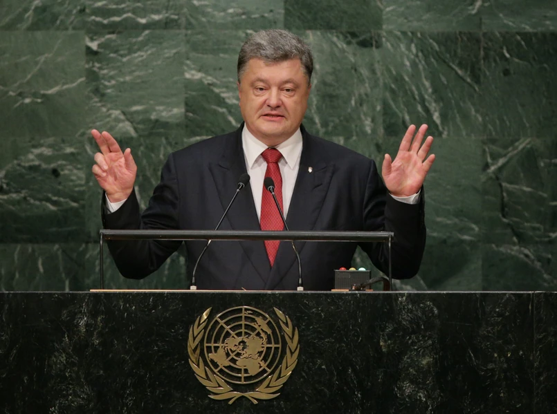 Przemawiając podczas debaty generalnej Petro Poroszenko powiedział, że rosyjska otwarta i niczym nie sprowokowana agresja stanowi brutalne naruszenie podstawowych norm i zasad Narodów Zjednoczonych. W gruncie rzeczy - podkreślił - mamy tu do czynienia z pragnieniem powrotu do czasów imperialnych. Poroszenko dodał, że propozycja Władimira Putina utworzenia koalicji przeciwko terroryzmowi jest próbą oszukania społeczności międzynarodowej. Jak można wzywać do utworzenia antyterrorystycznej koalicji, gdy samemu inspiruje się terroryzm przed własnymi drzwiami. Jak można mówić o międzynarodowej legitymacji, gdy prowadzi się wojnę za pomocą marionetkowych rządów - mówił Poroszenko.