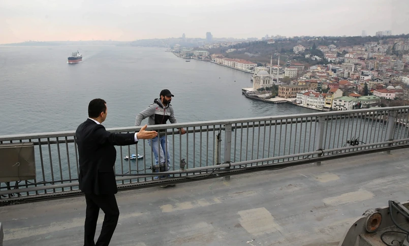 Mężczyzna przeszedł przez barierkę na moście i planował skoczyć do cieśniny bosforskiej. Policjanci przez kilka godzin bezskutecznie próbowali odwieść go od tej decyzji. Człowiek ten był jednak zdesperowany. Jak udało się ustalić policyjnym negocjatorom, znajdował się w stanie głębokiej depresji, miał problemy rodzinne i dlatego postanowił skończyć ze sobą.