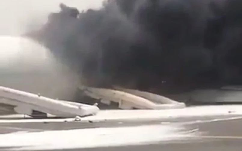 Na zamieszczanych w mediach społecznościowych zdjęciach mających przedstawiać incydent widać chmurę czarnego dymu unoszącą się nad palącym się samolotem.