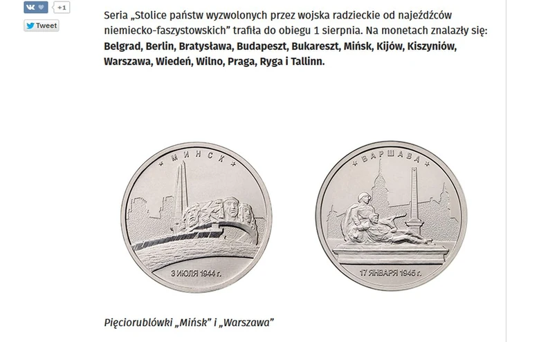 Brak gotowości do uznania prawdy historycznej o okupacji sowieckiej - tak litewski MSZ skomentował wydanie monety, na której widnieje stojący jeszcze do ubiegłego roku na wileńskim Zielonym Moście pomnik żołnierzy Armii Czerwonej. Na awersie pięciorublówki można przeczytać: "Wilno 13 czerwca 1944". To data wyzwolenia lub według innej interpretacji ponownego zajęcia stolicy Litwy przez wojska sowieckie - donosi serwis internetowy telewizji Biełsat.