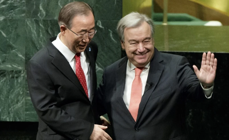 Guterres złożył przysięgę, trzymając dłoń na Karcie Narodów Zjednoczonych, przed liczącym 193 członków Zgromadzeniem Ogólnym. Następca Ban Ki Muna, który pełnił urząd przez dwie pięcioletnie kadencje, rozpocznie urzędowanie 1 stycznia 2017 roku. Zgromadzeni w poniedziałek pożegnali kończącego urzędowanie sekretarza generalnego owacjami na stojąco.