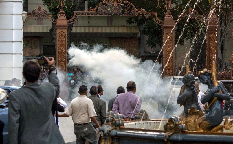 Według źródeł rządowych, oficer uprowadził policyjny helikopter i zaatakował budynek Sądu Najwyższego. W kierunku gmachu sądu wystrzelono dwa granaty, z których jeden nie eksplodował. Helikopter przeleciał też nad budynkami ministerstw spraw wewnętrznych i sprawiedliwości.