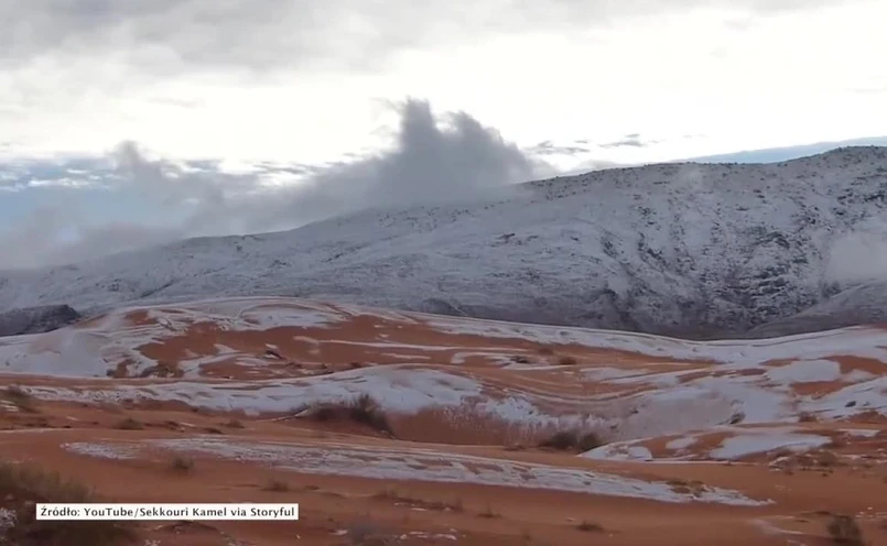 Na Saharę dotarła zima. W rejonie algierskiego miasta Ain Sefra spadło ponad 30 cm śniegu. W ciągu ostatnich 37 lat takie zjawisko zarejestrowano w tym rejonie jedynie 4 razy. Ci, którzy chcieli zobaczyć to nietypowe zjawisko, musieli się śpieszyć - śnieg, który spadł rano, zaczął topnieć już popołudniu.