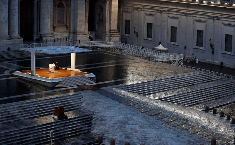 Podczas nadzwyczajnego wydarzenia modlitewnego w związku z pandemią papież powiedział: Od tygodni wydaje się, że zapadł wieczór. Gęste mroki ogarnęły nasze place, ulice i miasta; zapanowały nad naszym życiem wypełniając wszystko ogłuszającą ciszą i niepokojącą pustką, która paraliżuje wszystko na swojej drodze; czuje się ją w powietrzu, odczuwa w gestach, mówią to spojrzenia.