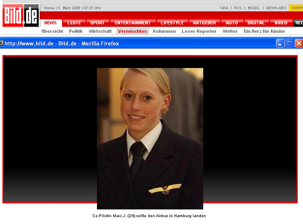 Jak się okazało, życie załodze i pasażerom na pokładzie uratował nie doświadczony kapitan samolotu, ale drugi pilot - 24-letnia Maxi J., drobna blondynka. Napisała o tym gazeta "Bild", a jej rewelacje potwierdziło Federalne Biuro Badania Wypadków Lotniczych.