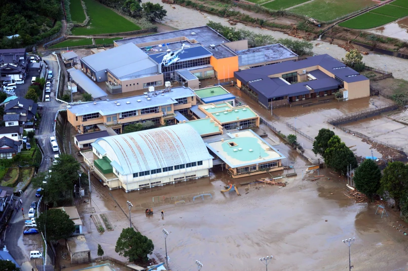 W prefekturze Kumamoto na zachodzie Kiusiu ludzi ewakuowano śmigłowcami i łodziami.