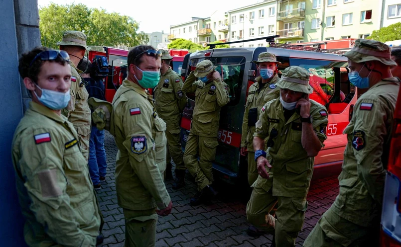 Wcześniej, podczas briefingu, komendant główny PSP nadbryg. Andrzej Bartkowiak poinformował, że samolotem leci grupa polskich strażaków: 39 ratowników grup poszukiwawczych z Warszawy, Poznania, Łodzi, Nowego Sącza, czterech ratowników chemicznych oraz cztery psy. Ratownicy są przygotowani na siedem dni ciągłej pracy na miejscu.