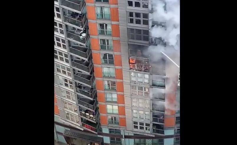 W południe straż pożarna poinformowała, że ogień, który wybuchł tuż przed 9.00 miejscowego czasu, o 11.30 został opanowany. Z powodu pożaru ewakuowanych zostało 38 osób dorosłych i czworo dzieci, ale część z nich już powróciła do mieszkań. Służby ratunkowe mówiły w trakcie gaszenia pożaru o tym, że udzielają pomocy medycznej pewnej liczbie osób. Później poinformowano, że dwie osoby zostały zabrane do szpitala, ale nie doznały one obrażeń zagrażających życiu. Na razie nie wiadomo, co było przyczyną pożaru.