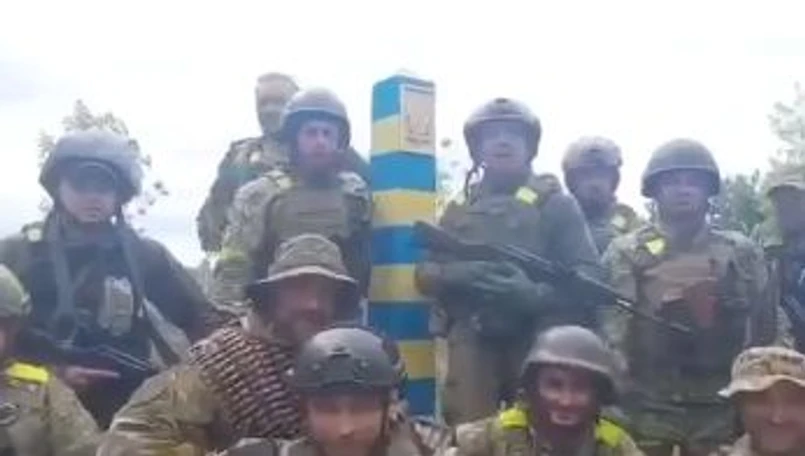 Syniehubow opublikował nagranie, na którym żołnierze dochodzą do granicy i umieszczają na niej słup graniczny.