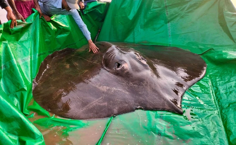Słodkowodna płaszczka olbrzymia, mierząca cztery metry długości, została złapana w północnej części Kambodży w ubiegłym tygodniu, a następnie wypuszczona z powrotem do rzeki wraz z urządzeniem mającym monitorować jej zachowanie – podała AFP.