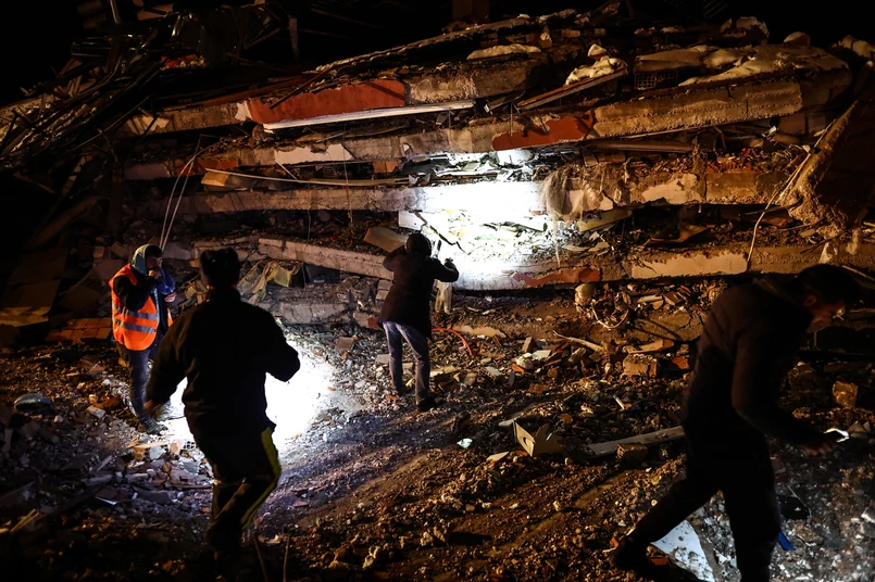 "W innym miejscu w prowincji Kahramanmaras ratownicy wyciągnęli spod gruzów dwoje żywych dzieci. Jedno leżało na zaśnieżonej ziemi. Ratownicy musieli uciszać gapiów, by usłyszeć głosy zasypanych pod gruzami" - relacjonuje "The Guardian".