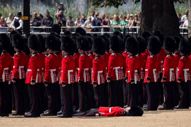 Na zdjęciach i nagraniach wideo widać m.in. puzonistę z orkiestry wojskowej, który zasłabł w trakcie gry, po czym po dłuższej chwili podniósł się i próbował kontynuować, ale ostatecznie zabrano go z placu defiladowego Horse Guards Parade. W tym samym czasie w tle widać innego żołnierza niesionego na noszach.