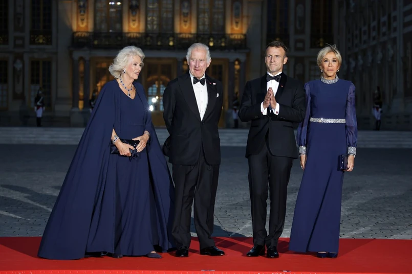 Emmanuel i Brigitte Macron oraz król Karol III z królową Camillą weszli razem do zamku w Wersalu, gdzie w kaplicy królewskiej wzięli udział w muzycznym przerywniku, a następnie udali się do ogromnej sali lustrzanej na uroczystą kolację.