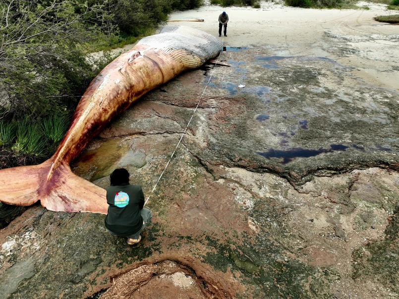 Biolodzy, którzy jako pierwsi dotarli do martwego płetwala błękitnego, twierdzą, że zwierzę o długości ponad 15 metrów i szerokości 3,4 metra padło co najmniej 10 dni temu na brzegu.