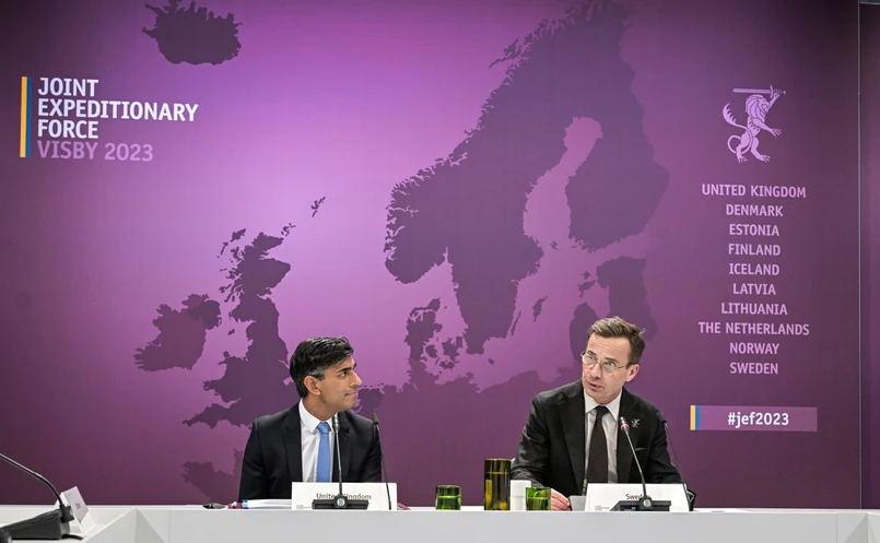 Kristersson na pokładzie brytyjskiego niszczyciela HMS Diamont spotkał się w porcie w Visby z premierem Wielkiej Brytanii Rishim Sunakiem. Szefowie rządów podpisali umowę o partnerstwie strategicznym w zakresie obronności, a także innowacji i handlu.