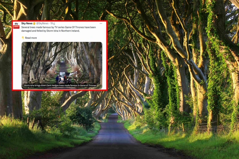 Orkan Isha powalił drzewa znane z serialu "Gra o tron"
