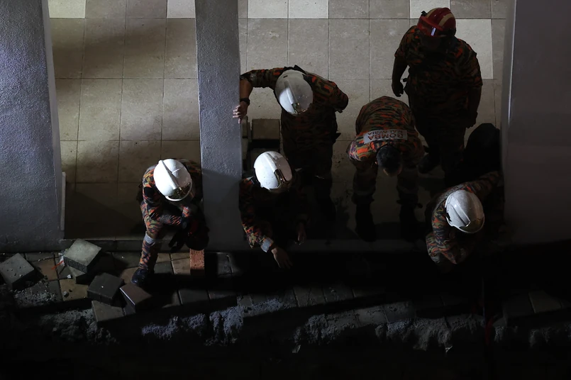 Departament Straży Pożarnej i Ratownictwa w Kuala Lumpur poinformował, że otrzymał wezwanie pomocy o godzinie 08:22 czasu lokalnego i wysłał na miejsce 15 strażaków. Szef miejscowej policji Sulizmie Affendy Sulaiman powiedział, że kobieta wpadła do głębokiej na 8 metrów dziury. Trwają jej poszukiwania.