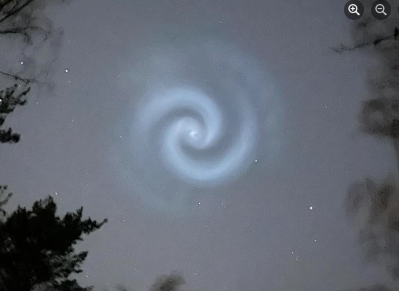Wyjaśnił, że podczas planowanej deorbitacji, zanim drugi stopień rakiety wejdzie w atmosferę i spłonie, często dochodzi do zrzutu resztek paliwa. Dzieje się to już w przestrzeni kosmicznej – kilkaset kilometrów nad Ziemią – gdzie nie ma powietrza, więc wyrzucone gazy nie rozpraszają się chaotycznie, lecz tworzą symetryczne struktury.
