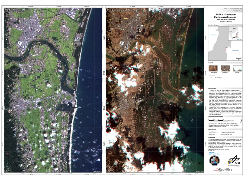 Japonia przed i po tsunami na zdjęciach z kosmosu