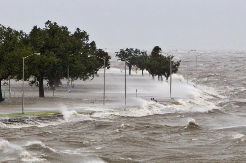 Fale przedarły się przez wały. Huragan Isaac atakuje