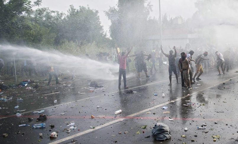 2 Mimo wezwań policjantów, część ludzi przedarła się na teren Węgier. Funkcjonariusze użyli więc gazu łzawiącego i armatek wodnych.