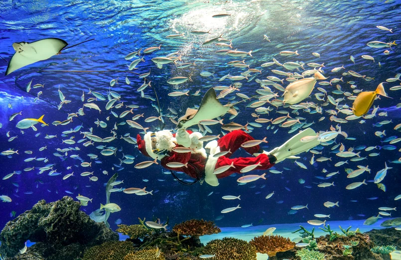 Ayaka Oshita, 27-letni nurek, trenuje w ramach przygotowań do nadchodzącego sezonowego karmienia w Sunshine Aquarium w Tokio. Pokazowe karmienie odbywać się będzie przez trzy dni w okresie świątecznym.