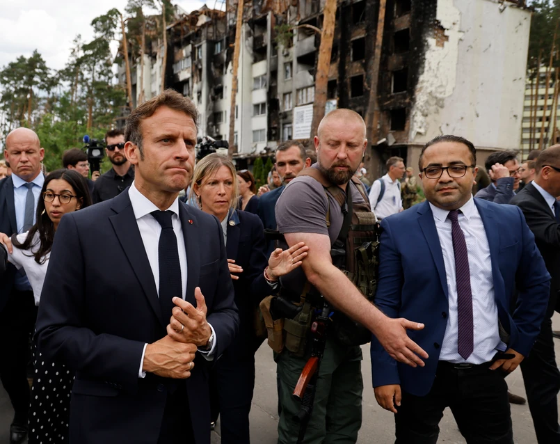 Prezydent Francji zapewnił, że Europa i Europejczycy pomogą Ukrainie odbudować kraj ze zniszczeń wojennych.