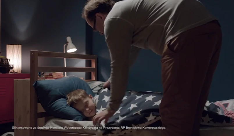 Obrazki ze spotkań prezydenta Komorowskiego ze światowymi przywódcami, w tym z Barackiem Obamą, przeplatane są scenkami aktorskimi. Widzimy dzieci na placu zabaw, rodziców kupujących wózek, czy ojca kładącego do snu dziecko.