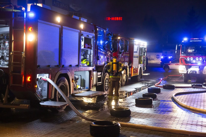 Na miejscu pracują strażacy oraz inne służby. Ratownicy rozpoczęli działania w piwnicach, gdzie doszło do zniszczeń.