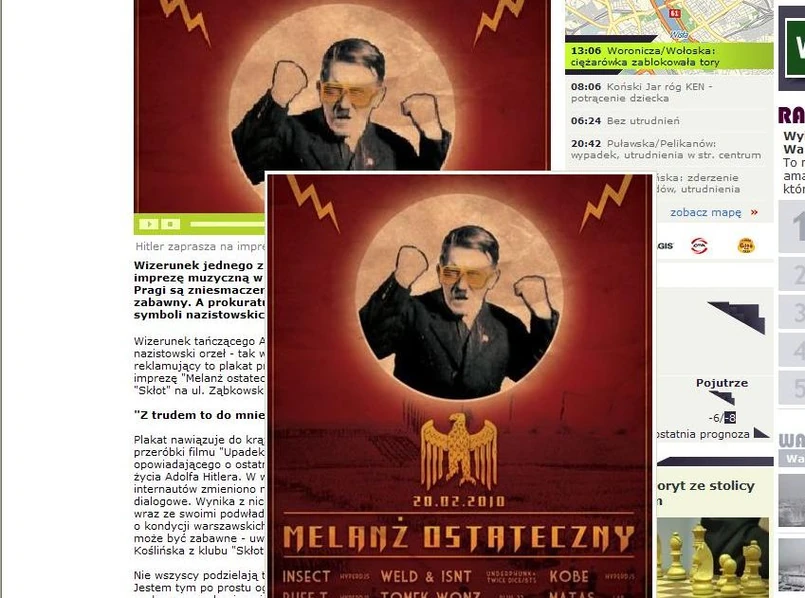 Plakat i zaproszenie na imprezę nawiązuje do licznych krążących po internecie przeróbek głośnego filmu "Upadek", opowiadającego o ostatnich dniach życia Hitlera. W jednej z wersji internautów do niemieckiego tekstu dorobiono napisy dialogowe. Z tego "tłumaczenia" wynika, że Hitler i jego generałowie rozmawiają nie o planach obrony Berlina, lecz o kondycji warszawskich klubów. "To może być zabawne" - tak powiązanie tej przeróbki z reklamą imprezy skomentowała dla TVN Warszawa Kalina Koślińska z klubu "Skłot".