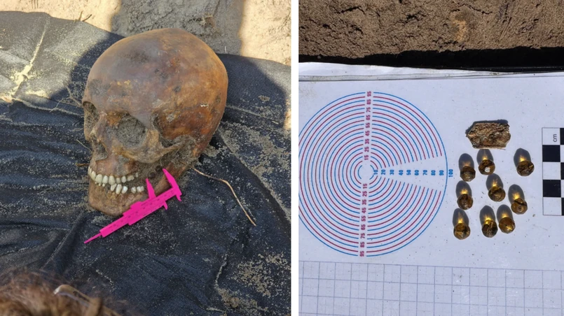 Pozostałości szkieletu znajdowały się na głębokości typowej dla improwizowanych pochówków wojennych z lat 1944–1945. Ze względu na charakter miejsca nie podajemy dokładnej lokalizacji – zaznaczył. Dodał, że na różaniec z krzyżykiem wykonany z drobnych szklanych paciorków, umieszczony w szczęce zmarłego, natrafiła antropolog sądowa Anna Słomska, która przeprowadziła wstępną analizę materiału kostnego.