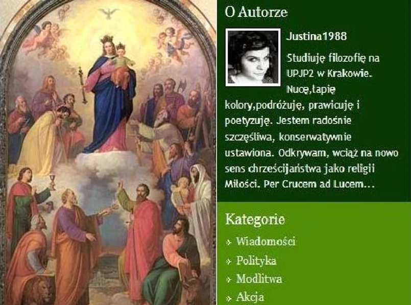"Postanowiłam pościć tego dnia o chlebie i wodzie/kto chce może być napój i mówić różaniec . Będę robić tak każdego 24 dnia miesiąca dopóki pani Senyszyn i jej ugrupowanie zejdzie ze swojej piekielnej drogi. Oddaję to Maryi Wspomożycielce, bo wiem ,że siły zła są ogromne" - napisała blogerka.