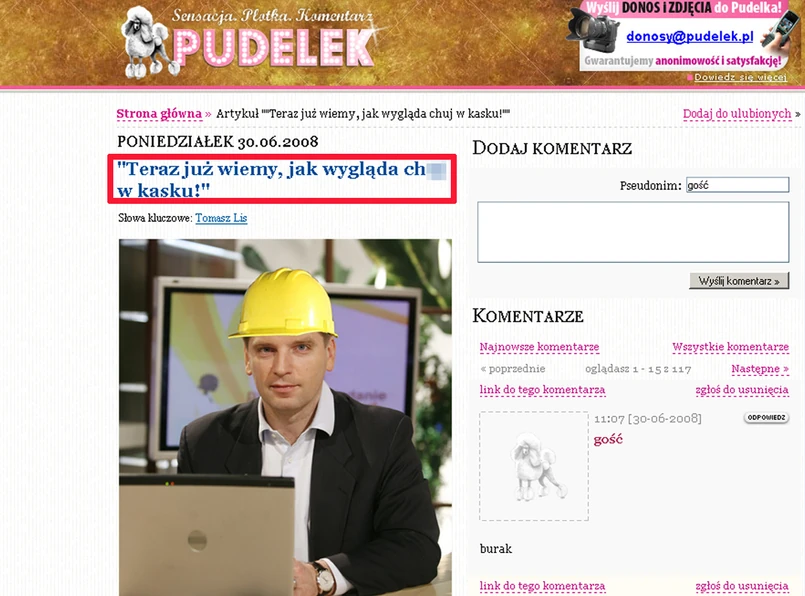 Teraz pudelek.pl pisze (przekleństwa wykropkowaliśmy): "Co mamy myśleć o Lisie, który przed kamerami udaje miłego i łasi się do widzów? Przecież każdego z tych ludzi z osobna wyzywałby od <ch...> i <pedałów> (gdyby u niego pracowali)... Ktoś w komentarzu napisał, że Lis zachowuje się tak bezwzględnie, bo jest <samcem alfa>. Naszym zdaniem jest dokładnie na odwrót - silna jednostka nie musi dowartościowywać się poniżając ludzi niżej sytuowanych i wyzywając ich od <pedałów>. To charakteryzuje właśnie jednostki słabe".
