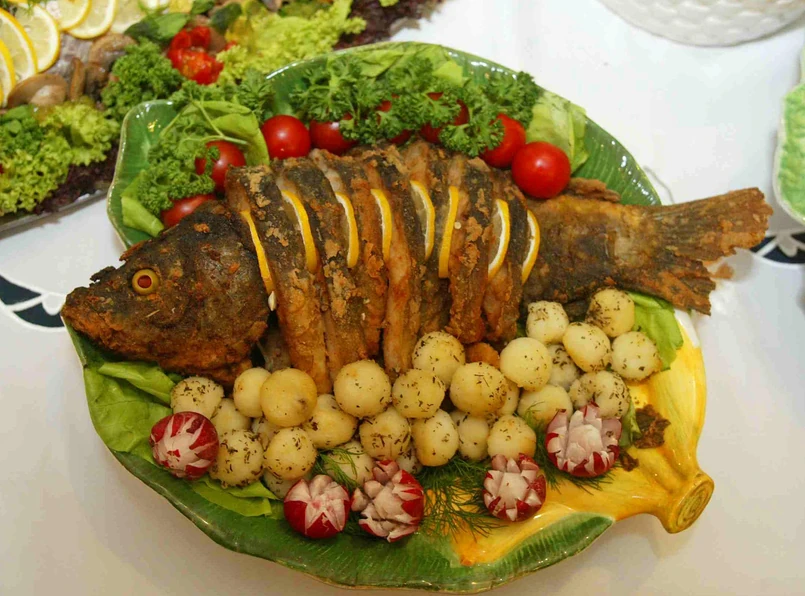 karp w galarecie z warzywami (100g) – 140 kcal; 2,6 km