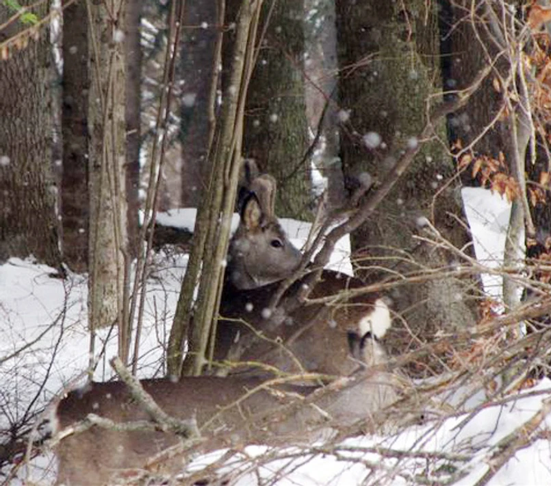Podczas poniedziałkowego obchodu po lesie w okolicy paśnika leśniczy Tomasz Baran zauważył dziwne zjawisko. Zwierzęta zamiast spokojnie zajadać kolację, tłoczyły się w zaroślach wokół polany, na której stoi paśnik. „Zauważyłem sarny wtulone w siebie w gęstych zaroślach obok drogi, jakby czekające na coś, potem jelenie, które również nie uciekały, też trwały w jakimś oczekiwaniu” - opowiada leśniczy.