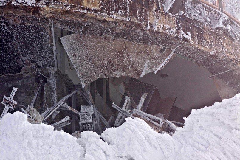 Wczoraj specjaliści Instytutu Meteorologii i Gospodarki Wodnej oraz inspektorzy budowlani przeprowadzili wizję lokalną w zawalonym budynku Obserwatorium Wysokogórskiego na Śnieżce. Przyczyną katastrofy nie są jeszcze do końca ustalone, ale najprawdopodobniej konstrukcja zawaliła się z powodu złego stanu technicznego budynku i ogromnych mas śniegu, ktore zalegały na dachu budynku. Eksperci stwierdzili, że uszkodzona jest konstrukcja górnego spodka. W tej chwili wspiera się na oblodzonych zwałach śniegu, które leżą na niższym spodku, ale w każdej chwili może się zawalić.