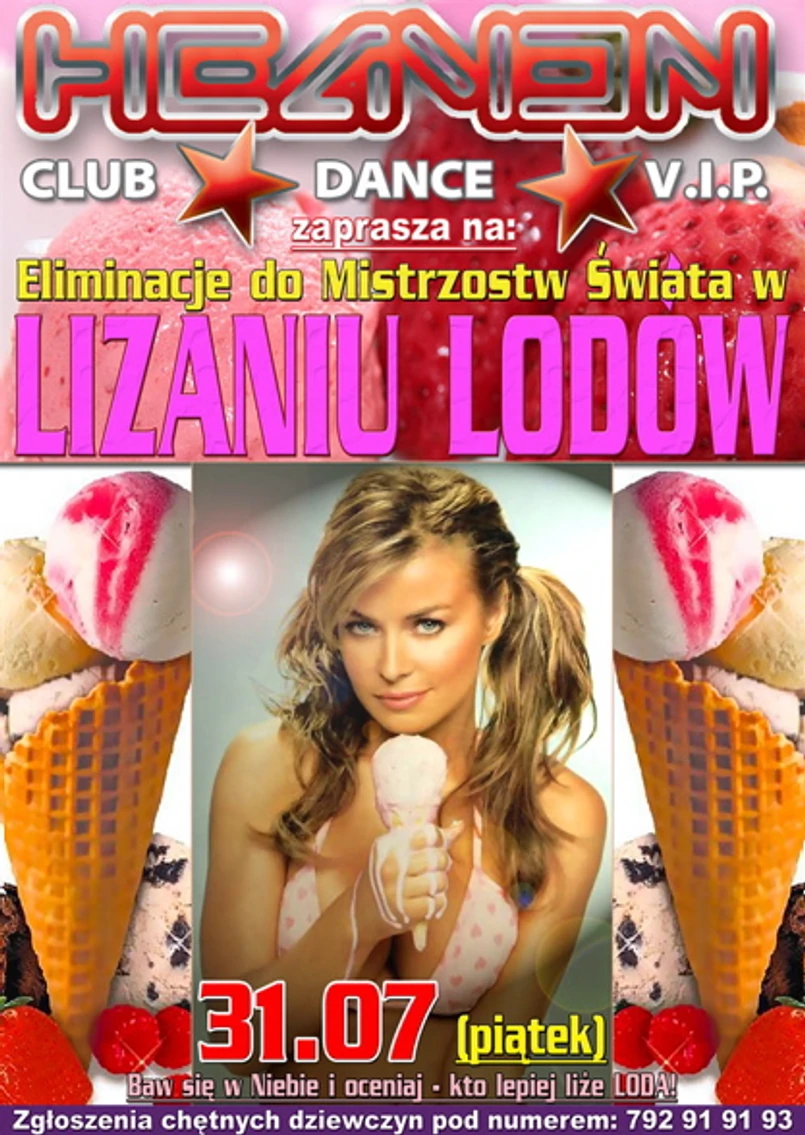 Czy jednak organizatorzy "Mistrzostw Świata w Lizaniu Loda" nie przekroczyli cienkiej granicy? Nazwa imprezy i plakat są mocno dwuznaczne. Czy taka ostra słowna erotyka powinna reklamować dyskotekę w klubie?