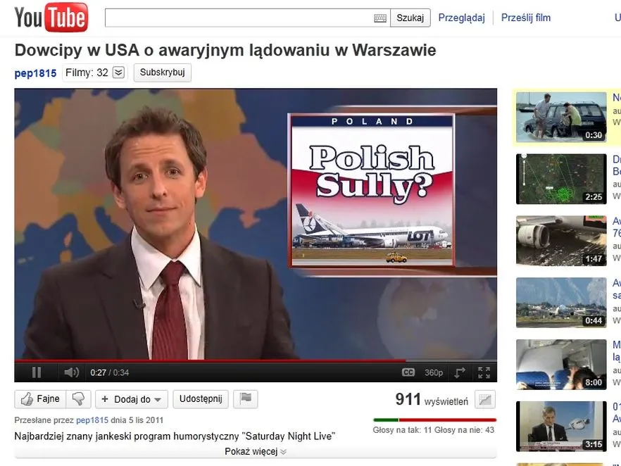 Kapitan przyznaje także, że słyszał już sporo żartów dotyczących feralnego lądowania, m.in. pomysł wymiany żurawia na wronę w logo LOT. "Córka mi pokazała. Fajny żart. Uśmiałem się. I ta wrona taka uśmiechnięta, radosna. Ale mnie się nasz żuraw podoba - mówi. Zapewnia też, że nie dostał żadnej propozycji z konkurencyjnych linii lotniczych, a nawet gdyby dostał, i tak by jej nie przyjął. A co do swej sławy, to ma nadzieję, że przełoży się na zaufanie do LOT-u. Pytany zaś, dlaczego sam nie poinformował pasażerów o problemach technicznych, tylko polecił to szefowi pokładu, odpowiada: "Nie słyszała pani dowcipu? Bo nie chciałem krakać".