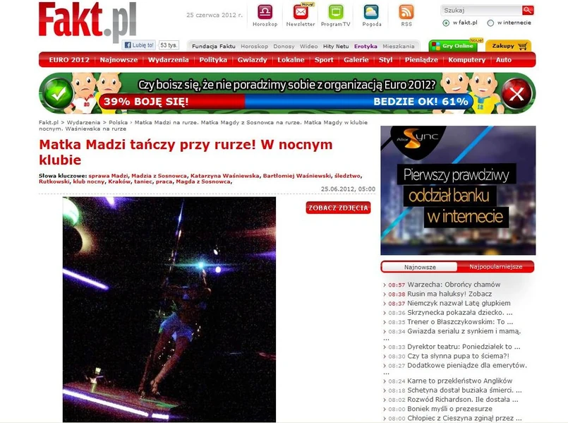 Gazeta relacjonuje, że kobieta, o której swego czasu mówiła cała Polska, a która według prokuratury mogła przyczynić się do śmierci swej półrocznej córki, znalazła pracę w Krakowie. Zdaniem "Faktu", Katarzyna Waśniewska zarabia, tańcząc przy rurze.