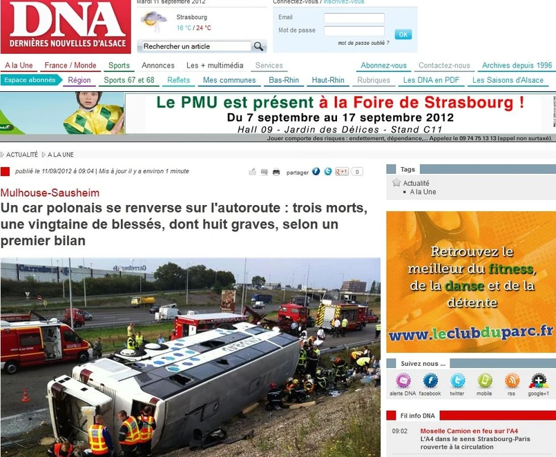 Autokarem podróżowało 65 osób i 3 członków załogi, były to osoby z terenu całej Polski, a podróżowały do Miluzy, Cannes, Tulonu, Lyonu, Chalon-Sur-Sac, Marsylii, Bollene, Nicei - wynika z oświadczenia biura Sindbad.