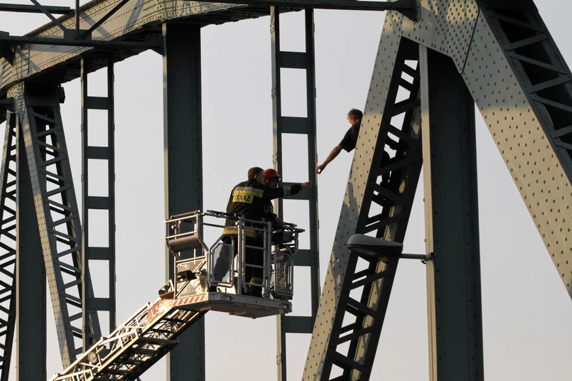 Po rozmowie z policyjnym negocjatorem mężczyzna ostatecznie - po kilku godzinach - zgodził się zejść z przęsła.