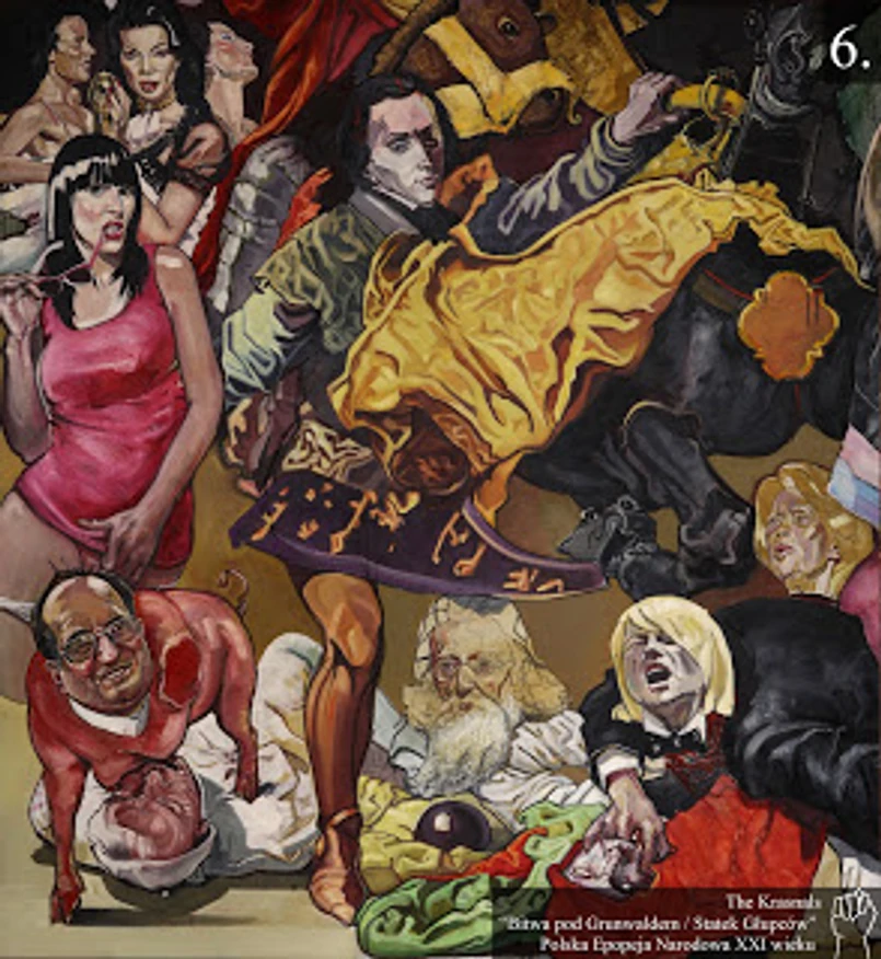 - Wykorzystując znane każdemu Polakowi dzieło Jana Matejki, relacjonujemy pierwszą dekadę XXI w. Obraz jest komentarzem do otaczającego nas świata, w którym możemy zaobserwować permanentną walkę o władzę, nihilizm oraz upadek wszelkich wartości, w klimacie rodem z obrazów Hieronima Bosha. To komentarz do rzeczywistości już po okresie transformacji, w momencie dążenia Polski do nowoczesności i starań o uplasowanie się na wysokiej pozycji. Cicho wierzymy, iż obraz ten stanie się nową aktualną epopeją narodową - tłumaczyli artyści przesłanie swojego dzieła.