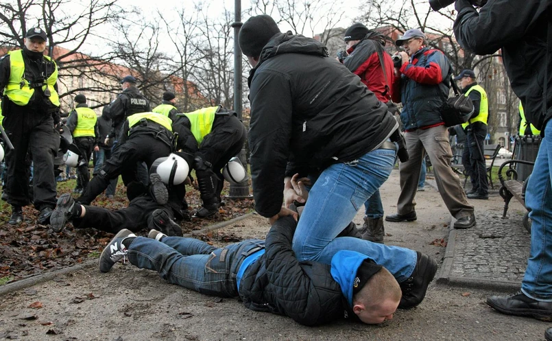 Ponad stuosobowy tłum zakłócił spotkanie wyrywając manifestującym transparenty i wykrzykując ksenofobiczne hasła: "Szczecin wolny od islamu", "Płacze Anglia, płacze Francja, tak się kończy tolerancja".