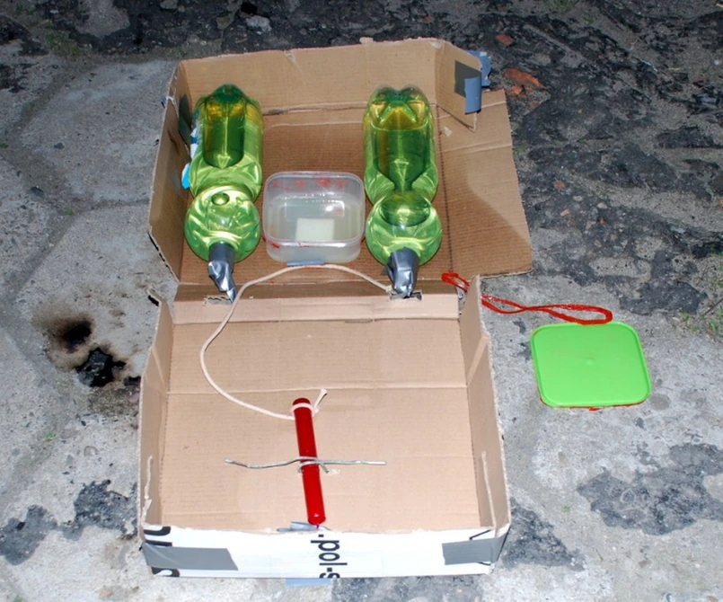 Ładunki, którymi posługiwali się podejrzani, skonstruowane były z dwóch butli wypełnionych płynem. - Wewnątrz był dodatkowy materiał wybuchowy, ładunki były wyposażone w lont, który miał podejrzanym umożliwić bezpieczne oddalenie się - mówił Mrozek.