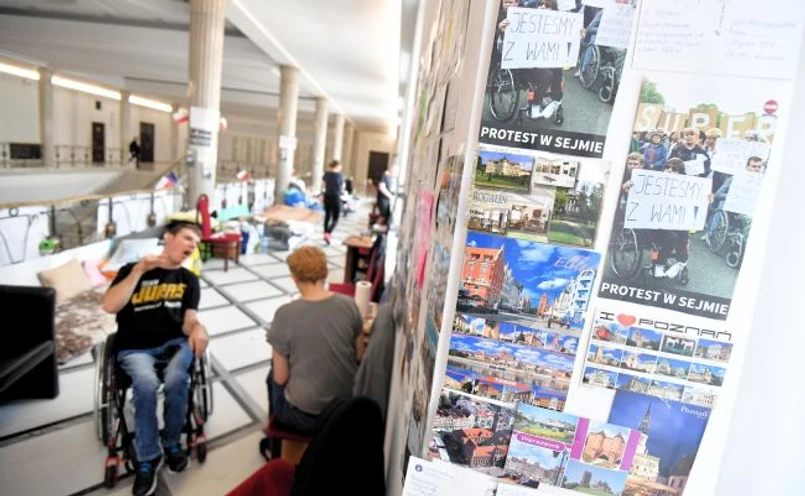 Wyrazy poparcia, również w formie widokówek, napływają do protestujących w Sejmie z całego kraju. Matki niepełnosprawnych przyczepiły je do ściany, co najwyraźniej nie spodobało się decydentom odpowiedzialnym za porządek w parlamencie.