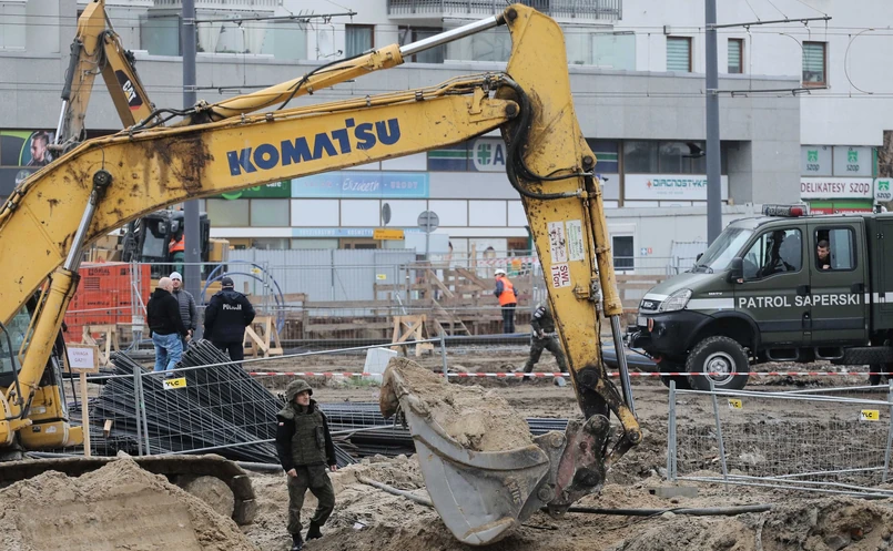 Ewakuowano około 30 pracowników budowy metra. Policjanci zabezpieczają teren i czekają na saperów z jednostki w Kazuniu. Pilnujemy, by nikt nie zbliżał się do tego miejsca. Mogą występować utrudnienia w ruchu - powiedziała PAP podkom. Paulina Onyszko.
