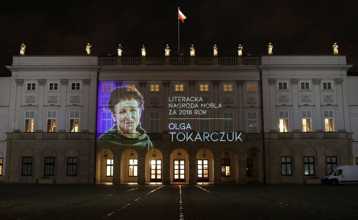 "Tak aktualnie wygląda Pałac Prezydencki! Raz jeszcze wielkie gratulacje dla Olgi Tokarczuk!" - napisał na Twitterze rzecznik prezydenta Andrzeja Dudy Błażej Spychalski, który zamieścił zdjęcie Pałacu, na którym widnieje wizerunek pisarki oraz napis "Literacka Nagroda Nobla za 2018 rok. Olga Tokarczuk".
