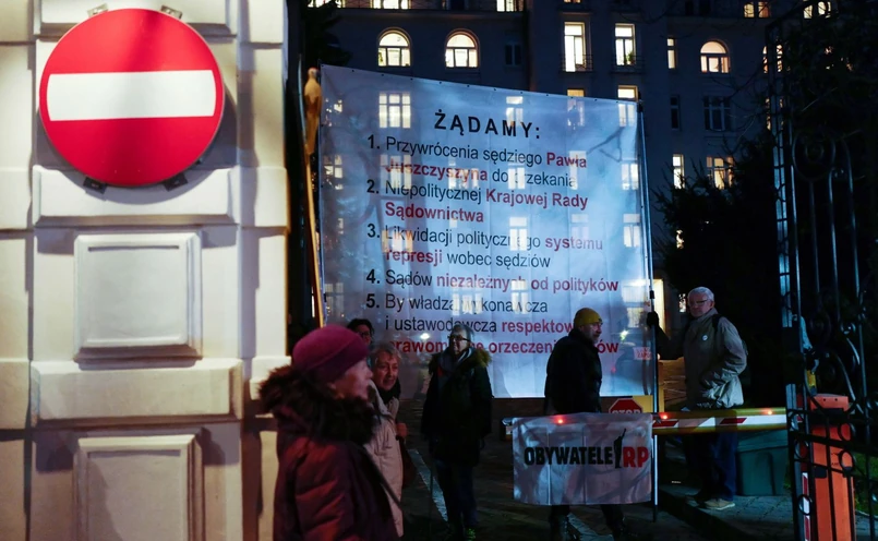 Blokada bram Ministerstwa Sprawiedliwości zaczęła się w czwartek około godziny 8. Protestujący mieli ze sobą transparenty, na których wypisane były postulaty dotyczące między innymi przywrócenia sędziego Juszczyczyna do orzekania, oraz "Niepolitycznej Krajowej Rady Sądownictwa".
