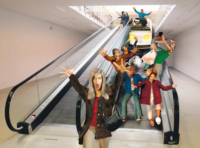 Jeden z pracowników serwisu sprzątającego próbował wdrapać się na maszynę czyszczącą. Zrobił to jednak tak nieudolnie, że potoczyła się ona w dół po ruchomym chodniku. Prosto na tłum klientów. Sprzątacz zdążył jeszcze krzyknąć: "Ludzie, uciekajcie!". Wybuchła panika.