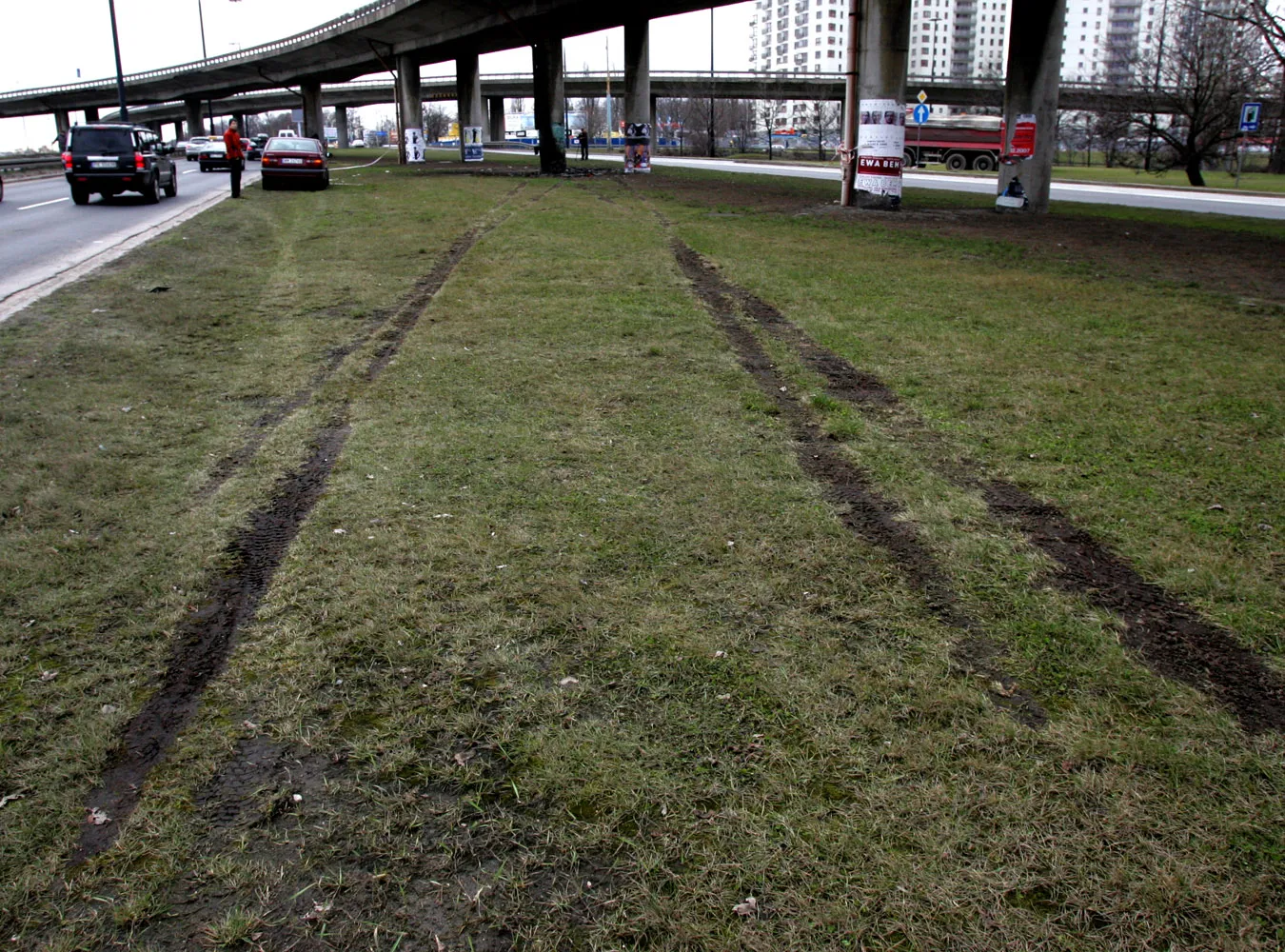 Tuż przed wjazdem pod estakadę, wiodącą w stronę Ursynowa, auto gwałtownie wyskakuje w górę na garbie biegnącym w poprzek jezdni.